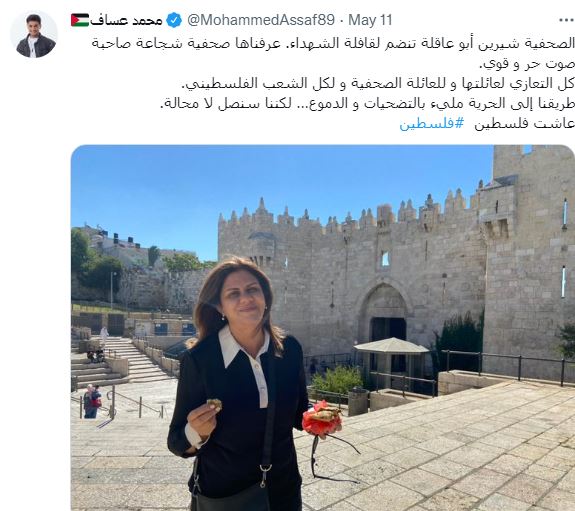 أهل الفن والإعلام ينعون المراسلة الفلسطنية شيرين أبو عاقلة محمد عساف:"طريقنا إلى الحرية مليء بالتضحيات و الدموع"